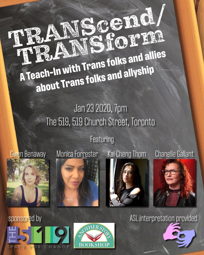 If you are in Toronto, please also keep in mind that the bookshop where I work, Another Story, is co-sponsoring an upcoming teach-in for trans allies featuring incredible trans women speakers Kai Cheng Thom and Gwen Benaway. Click on the image below for details.